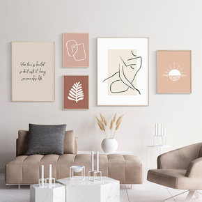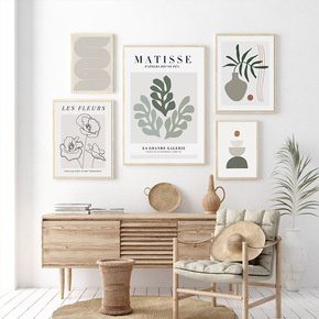 简约北欧马蒂斯抽象线条植物花瓶艺术海报组合装饰画客...
