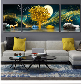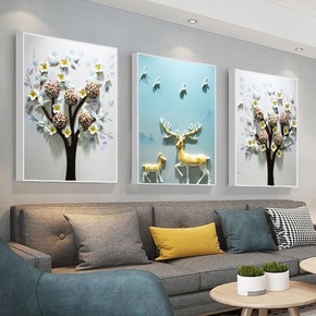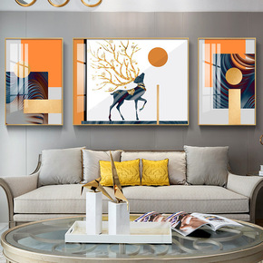 现代轻奢客厅装饰画抽象鹿组合挂画简约欧式壁画沙发背...