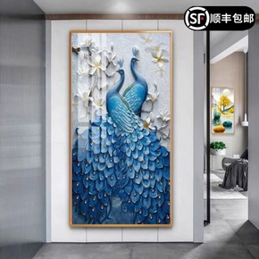 现代轻奢装饰画 客厅沙发背景墙三联画孔雀花卉吉祥寓...