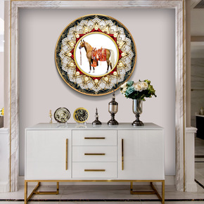 圆框玄关画入户走廊过道装饰画新中式墙画背景墙客厅挂...