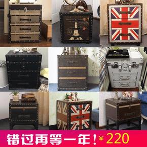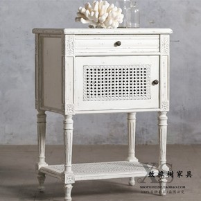 美式复古做旧实木床头柜法式藤艺床边柜收纳柜边几欧式...