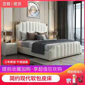 北欧轻奢皮床1.51.8单双人大床简约现代主卧小户...
