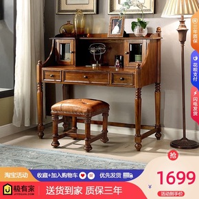 美式实木梳妆台2021年新款翻盖欧式多功能化妆桌卧...