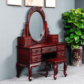 梳妆台红木色花梨木家具化妆桌仿古古典菠萝格梳妆凳组...