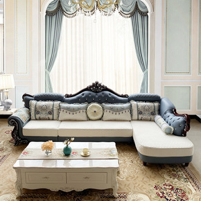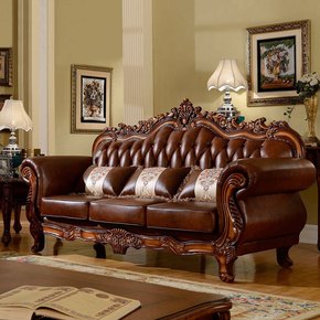 欧式真皮沙发别墅大小客厅奢华组合123实木雕花美式...