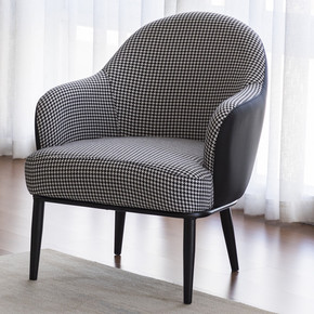 北欧单人椅简约休闲卧室洽谈椅千鸟格皮布艺靠背扶手沙...
