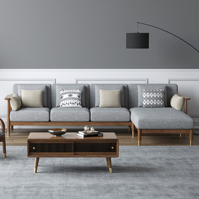 欧式工厂批发简欧实木雕花转角布艺橡木户型简约懒人沙...