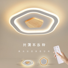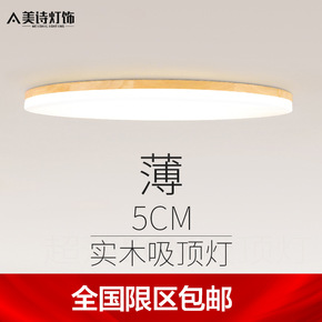 日式吸顶灯北欧卧室灯简约现代原木风房间灯圆形儿童房...