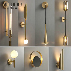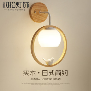 北欧实木壁灯卧室床头灯日式原木电视背景墙上走廊过道...