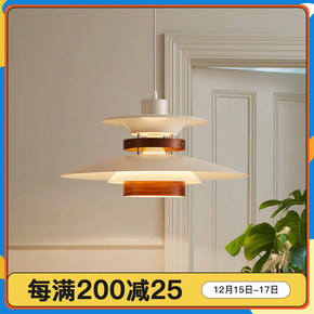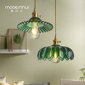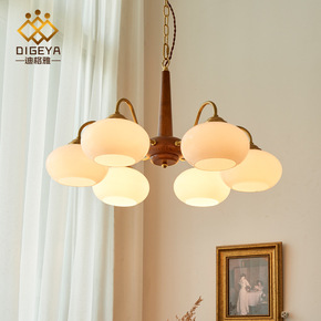 日式胡桃木复古玻璃吊灯侘寂风中古vintage卧室...