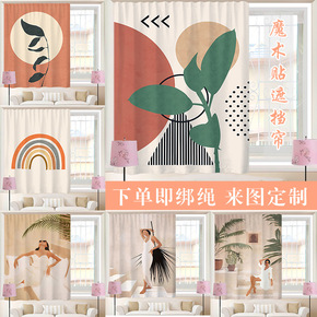 免打孔全遮光遮阳隔热卧室出租屋厨房简易魔术贴粘式宿...