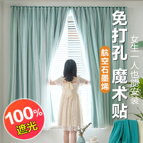 双层魔术贴成品窗帘卧室出租房 全遮光免打孔安装自粘...