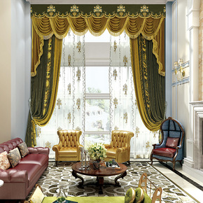 窗帘布厂家直销 现代欧式金皮窗帘水溶绣花成品窗帘客...