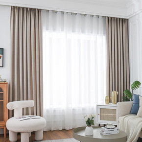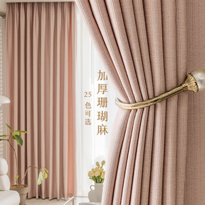 高2.8米/3.2米高遮光珊瑚麻窗帘布料北欧轻奢窗...