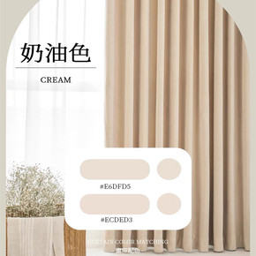 奶油纯白全遮亚麻可水洗隔热防晒投影纯色窗帘 送高温...