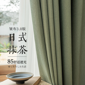 日式细褶条纹布抹茶色2022款卧室遮光窗帘布轻奢北...