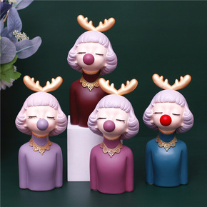 北欧式创意红酒架摆件客厅玄关酒柜家居装饰品鹿摆设乔...