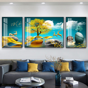 客厅装饰画沙发背景墙画壁画卧室挂画北欧晶瓷三联轻奢...