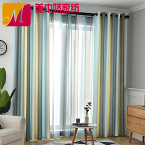 柯桥厂家直发条纹麻布窗帘ins网红简约现代渐变色窗...
