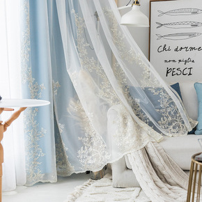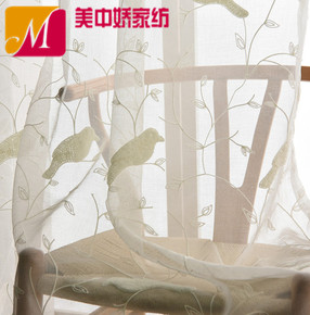 定制现代简约北欧绣花窗帘清新羽毛苏绣纱帘客厅卧室网...