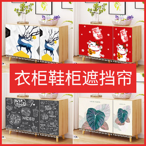 ins遮挡帘橱柜帘鞋柜帘厨房免打孔自粘柜子居家布艺...