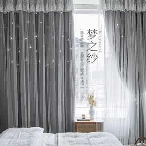 网红遮光窗帘镂空星星卧室免打孔ins双层轻奢飘窗星...