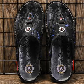 2021新年凉鞋男真皮超纤沙滩人字拖鞋男夏季时尚外...