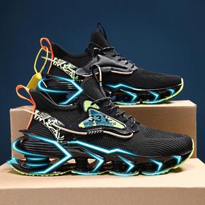 男鞋2021年夏季新款国潮鞋飞织网面爆米花运动跑步...
