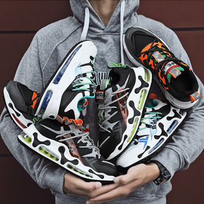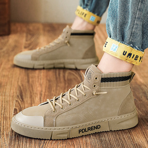 男鞋高帮潮鞋2021新款男士板鞋韩版潮流百搭夏季透...