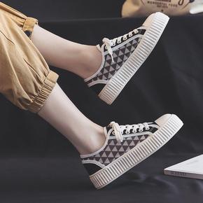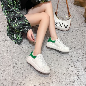 小香风饼干鞋春款磨砂牛皮厚底大头简约系带休闲板鞋 ...