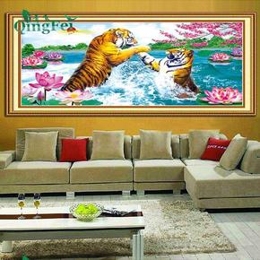 2019十字绣新款线绣印花挂画老虎图客厅猛虎下山满...