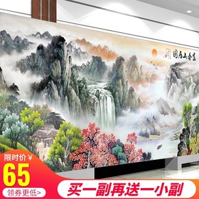 钻石画新款客厅满钻家和万事兴山水风景画点贴异形砖石...