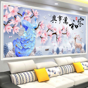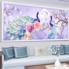 十字绣钻石绣新款孔雀玄关竖版走廊风水招财花开富贵5...