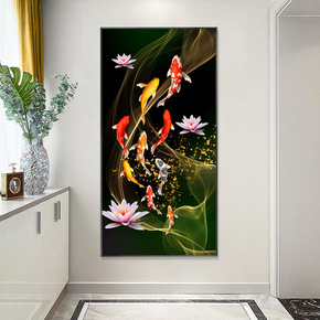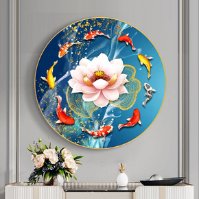 九鱼荷花十字绣新款九鱼运祥满绣客厅卧室餐厅小幅画圆...