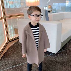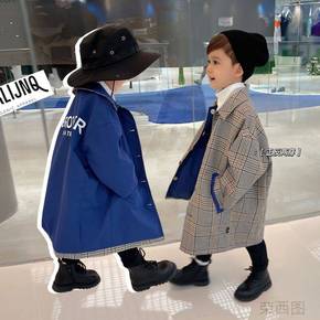 辰辰妈儿童英伦风外套男童中长款洋气经典千鸟格双面穿...