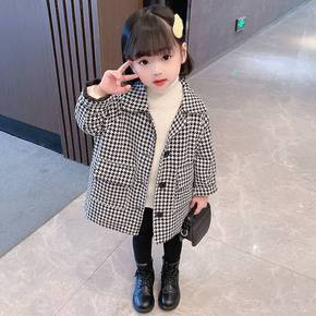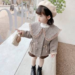 女童秋冬装夹棉外套2022新款女宝宝韩版千鸟格韩版...