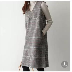 秋冬女装2021年新款毛呢时尚修身显瘦千鸟格背心连...