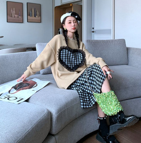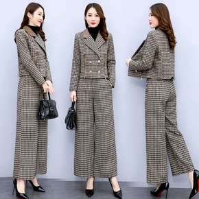 货号:P2376千鸟格笑脸套装 货源类别:现货 适用性别:女 风格:韩版 套装类型:裤套装 ...