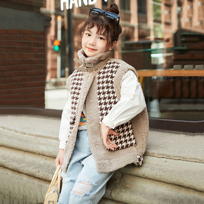 风禾女童小香风马甲2021秋冬新款复古千鸟格儿童百...