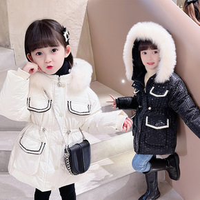 女童羽绒服2021冬季新款韩版女宝宝长款修身千鸟格...
