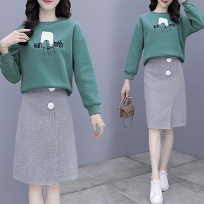 运动套装女装2021新款秋冬大码宽松卫衣女千鸟格上...