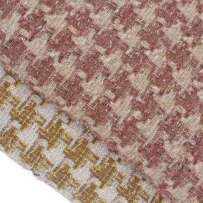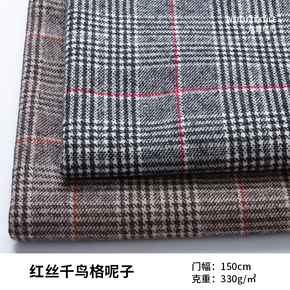 红丝千鸟格子粗纺毛呢面料 秋冬女装大衣休闲服套装裙...