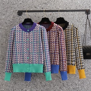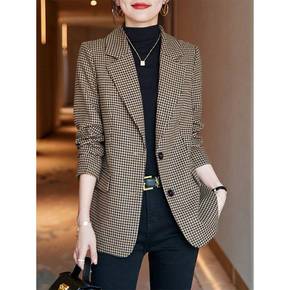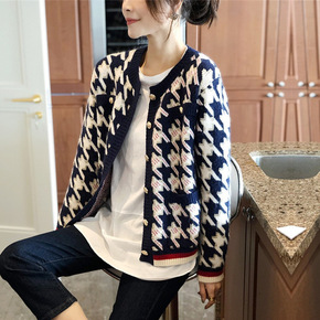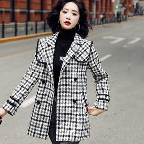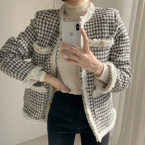 小香风毛呢外套女秋冬新款小个子收腰气质千鸟格呢子风...