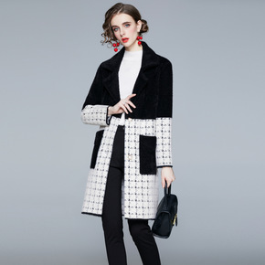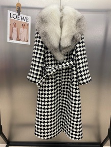2022年新款女总裁进口整皮狐狸毛领皮草外套棋盘格...