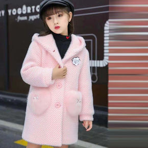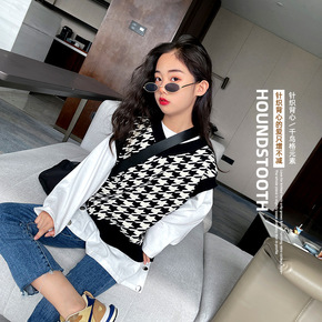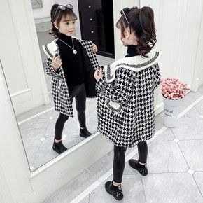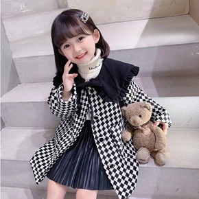 女童千鸟格呢子外套冬季新版韩版童装中小童宝宝加棉格...