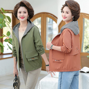 妈妈春秋装外套2022新款洋气中年女装连帽夹克衫气...