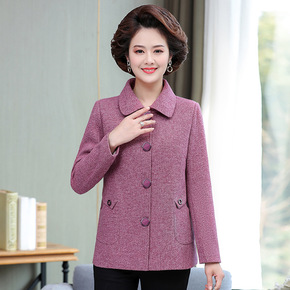 中老年人女春装毛呢外套短款2021早春新款50岁中...