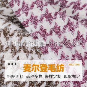 新款现货大小千鸟格双色色织秋冬女装时装大衣粗纺呢料...