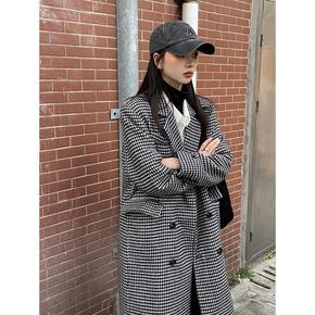 千鸟格子风衣女中长款2021年秋冬新款韩版宽松加厚...