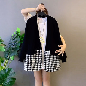 夹棉千鸟格套装2021秋冬新款ins博主风毛呢外套...